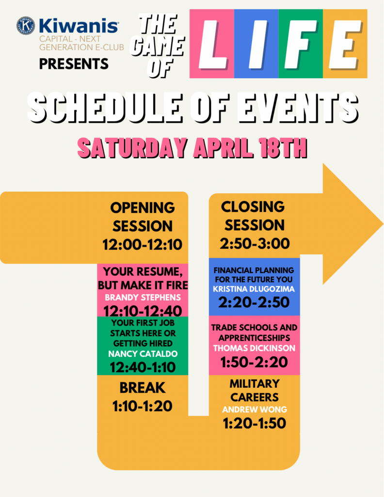 The Kiwanis Club of Capital – Next Generation e-Club presents “The Game of Life:” a webinar-based event focused on college and career preparation for students ages 14-22.